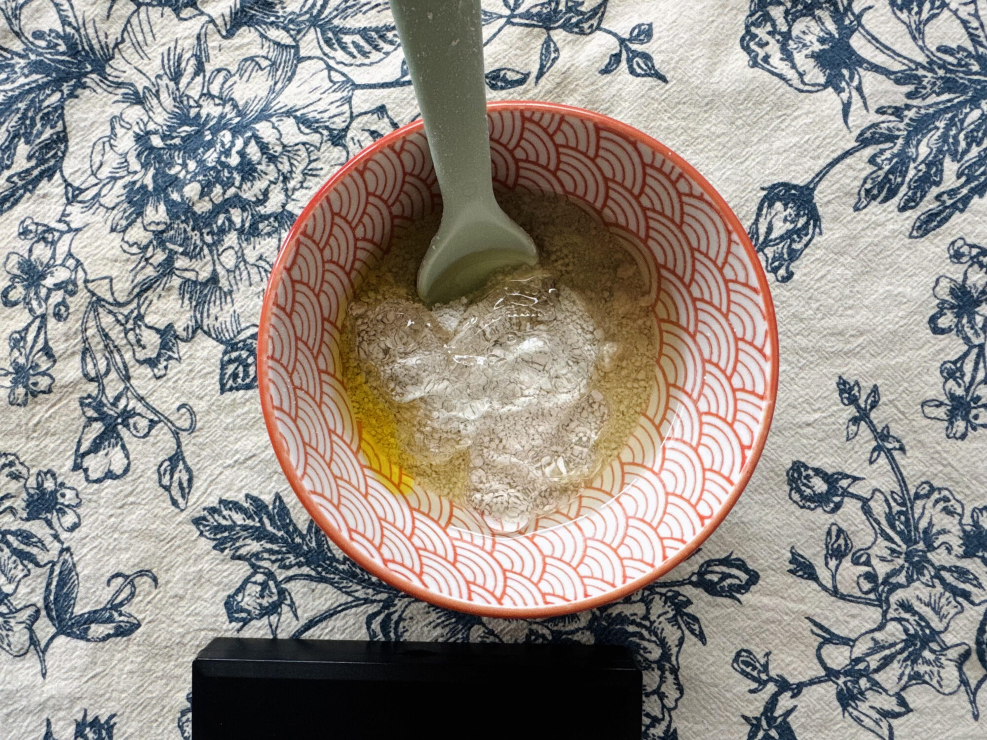 W czystej, zdezynfekowanej miseczce odważamy wszystkie składniki.